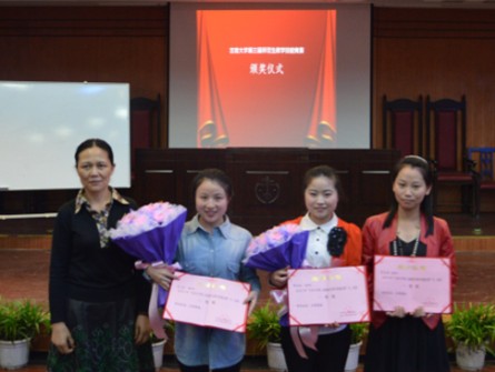 图为 教务处副处长杜建林女士颁发优秀组织奖并与获奖单位合影 (孙立青 摄)