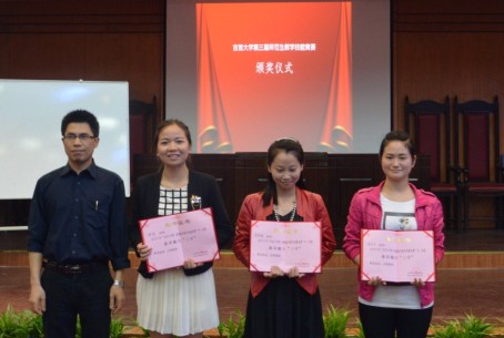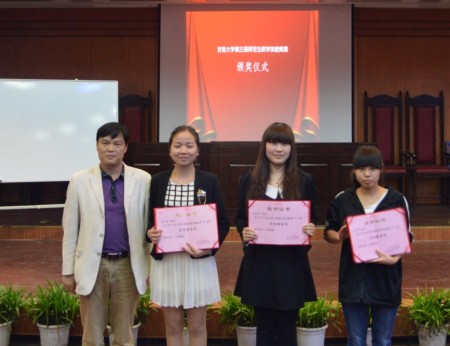 图为 教务处副处长杜建林女士颁发一等奖并与获奖选手合影 (孙立青 摄)