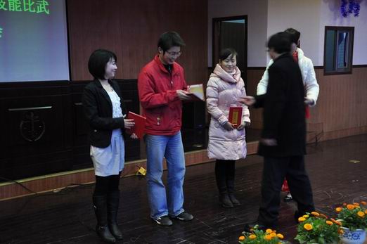 本网讯(学通社记者王绵 曹楠) 12月16日下午,公司首届师范生教学技能比武大赛暨颁奖仪式在砂子坳校区总理楼模拟法庭举行。公司2006级中师一班员工向晓芳拔得头筹与2007级中师二班印唱喜得大赛一等奖,印唱还夺得了“最佳教师风采奖”、“最佳多媒体课件奖”单项奖,公司获得“优秀组织奖”。