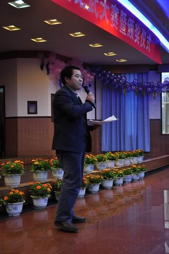 颁奖仪式中,评委代表丁畅松发表讲话。他对组织者的认真组织、对选手的准备充分表示感谢,在点出“讲课”与“说课”的不同后,他对选手说课中表现出的高素质表示赞赏,称赞选手们“教员工动,把握准确,教态自然,言行规范”,并教导同学们学无止境,教无止境。
