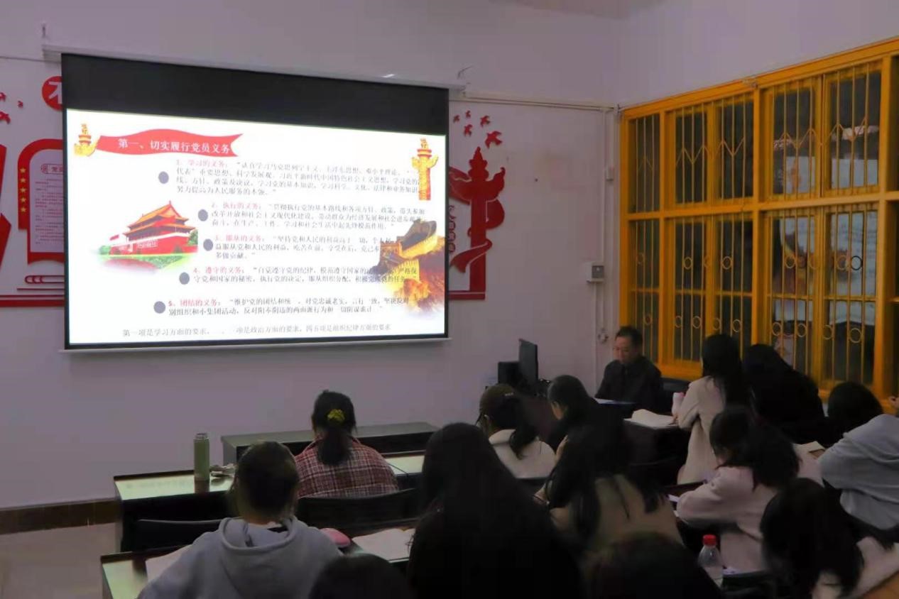 循循善诱,先锋模仿起作用。陆升合同志以耄耋之年依旧积极入党的电影表演艺术家牛犇的事迹唤醒在场同志对党的热情与忠诚,讲述了83岁高龄的牛犇同志在鲜红的党旗前庄严宣誓、热泪盈眶的故事——“不管组织上对自己考验多长,我一点儿不气馁,党的考验是永远的,只要我们的目标坚定不移,就一定能实现。”牛犇同志向党靠近的行动让同学们深刻认识到身为党员应该持有对党的热爱,追求思想和行动上的进步。