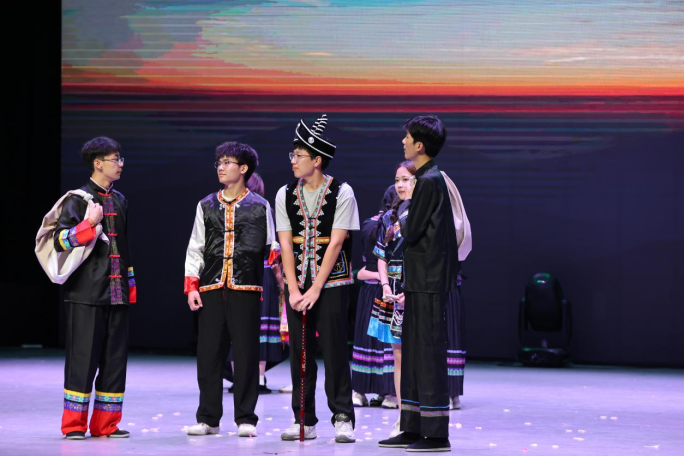 展演在舞台剧排练花絮视频中拉开帷幕,5幕舞台剧轮番上演。数名2022级网络与新媒体专业员工在舞台上倾情演绎,为大家献上了一场精彩绝伦的视听盛宴,并通过这样的表演形式彰显着青年员工的担当作为。比如在《觉醒年代·青春》中,青年学子们与陈独秀和李大钊等众先生们在长城上“论道”“寻路”,歌咏“青春”。“以青春之我,创建青春之家庭,青春之国家,青春之民族,青春之人类,青春之地球,青春之宇宙”,青年之声,振聋发聩!在原创剧《湘鼓声声送君行》中,员工们演绎了湘西儿女在家国动荡,国之大义面前,放下儿女情长,远赴战场抗击倭寇、保家卫国的感人热血故事。