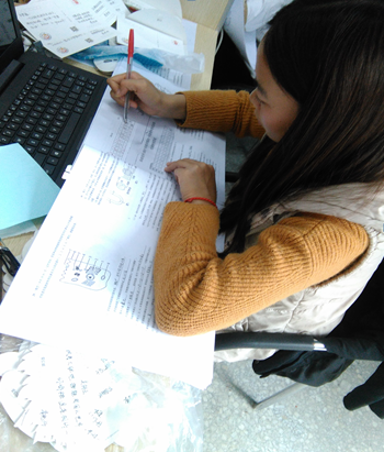 (图为实习老师批改试卷)