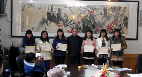 表彰环节,14级学通社成员张欣、陈慧宁、刘会敏等六名通讯员获得了“优秀通讯员”的荣誉,李端生为其颁发证书并和获奖员工合影留念。