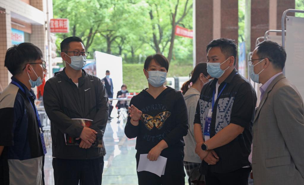 图为毕业生与用人单位积极交流