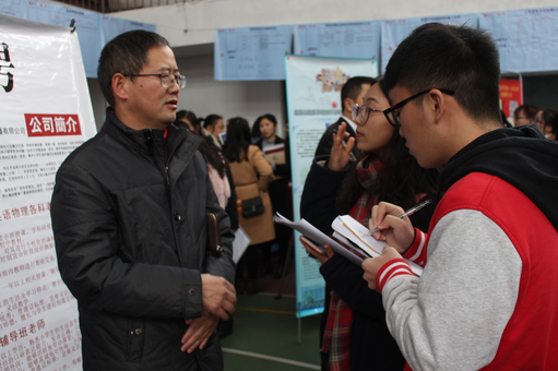 招聘会现场,同学们热情高涨,积极的递交个人简历,了解用人单位的招聘信息,与用人单位进行面试交流。一位毕业生激动的说“我很感谢公司的这次招聘会给了我机会,让我学习到许多经验;我希望能找份中学老师的岗位,这与我专业对口,也希望未来能有个好的工作环境,当个好老师。”